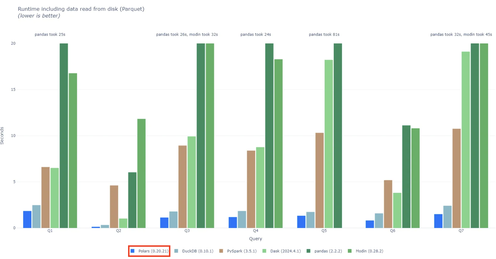 - 성능: Polars는 Rust로 작성되어 Pandas보다 일반적으로 더 빠릅니다. 특히 대규모 데이터셋에서 그 차이가 두드러집니다. (참고)