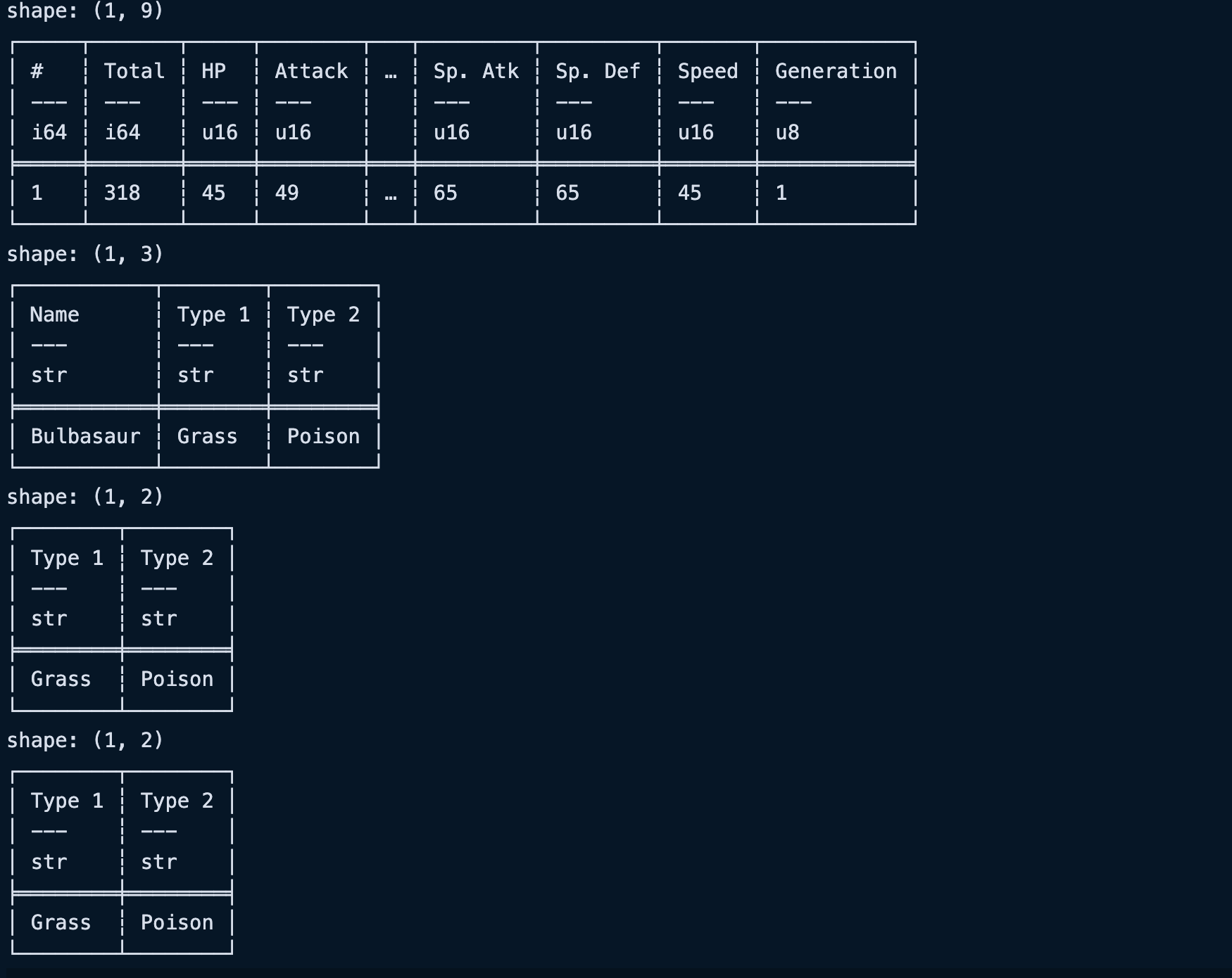 df_selected = df.select(["Name", "Type 1", "HP"])