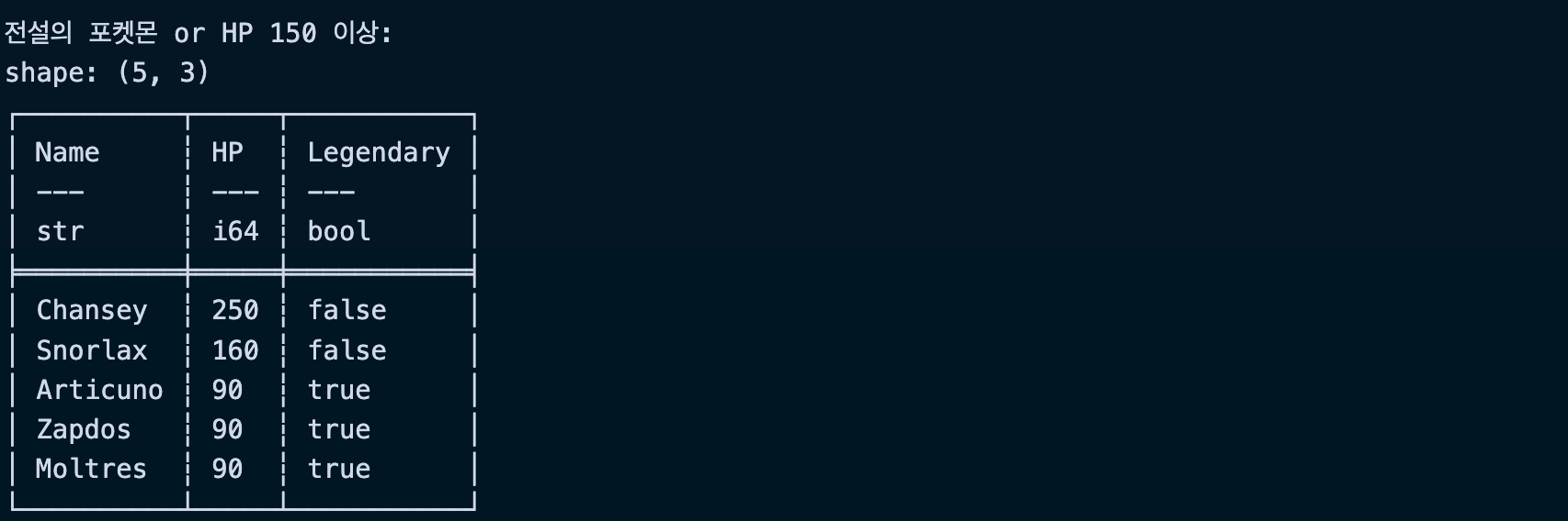 pl.col("Legendary") | (pl.col("HP") >= 150)