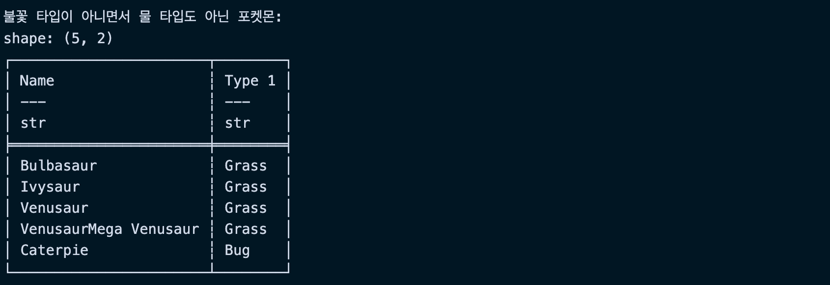 print("\n불꽃 타입이 아니면서 물 타입도 아닌 포켓몬:")