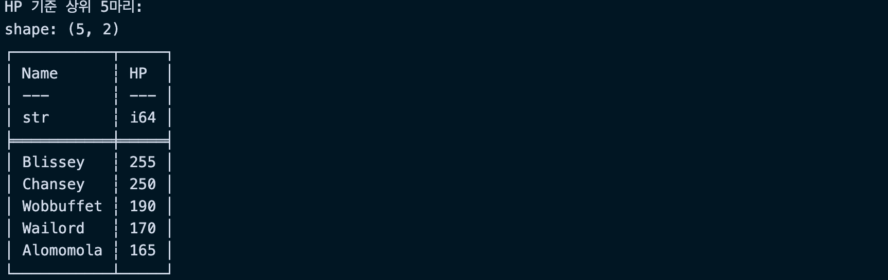 💡 여기서 사용하는 Polars 버전은 1.5입니다. polars 버전이 1 미만이면 예시 코드가 제대로 동작하지 않을 수 있습니다.