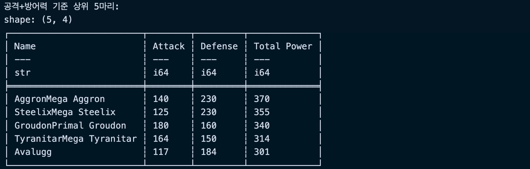 total_power_expr = (pl.col("Attack") + pl.col("Defense")).alias("Total Power")