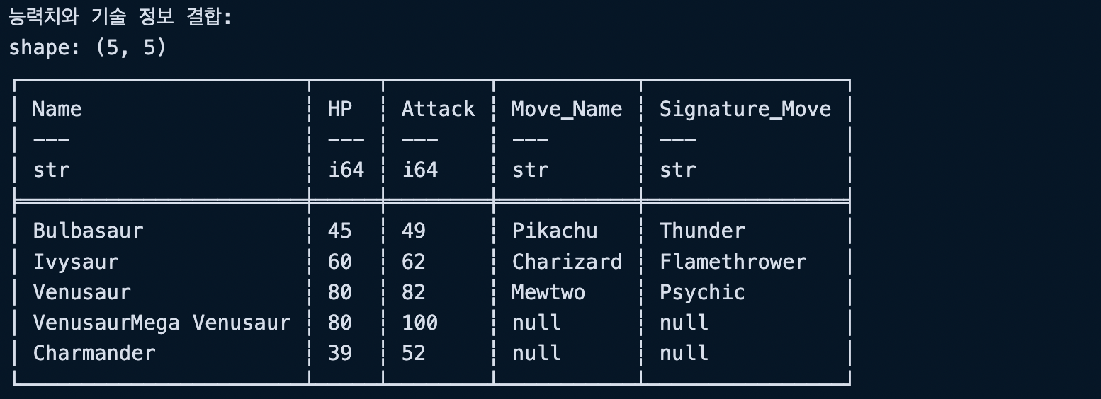 [df.select(["Name", "HP", "Attack"]), moves_df.select([pl.col("Name").alias("Move_Name"), "Signature_Move"])],