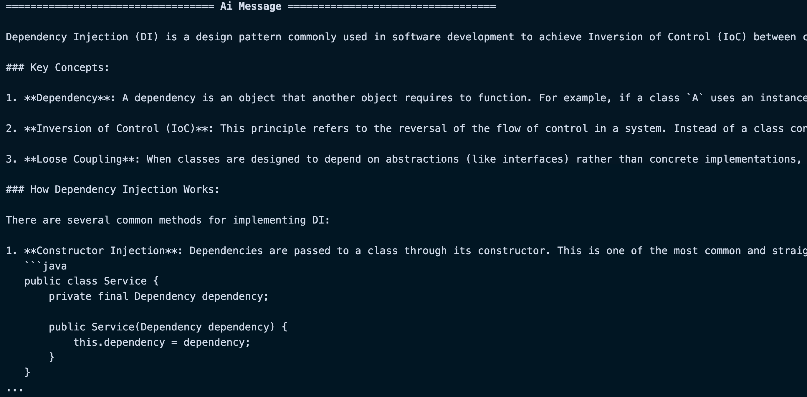 HumanMessage(content="의존성 주입(Dependency Injection)의 개념에 대해 설명해주세요.")