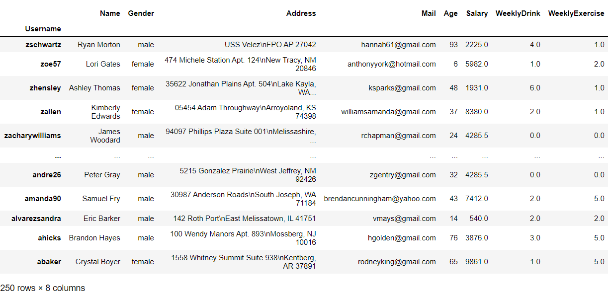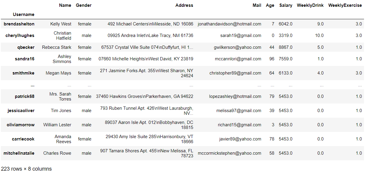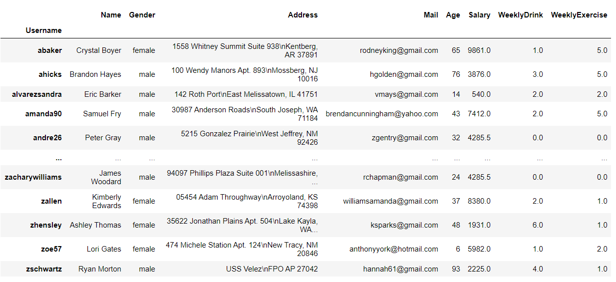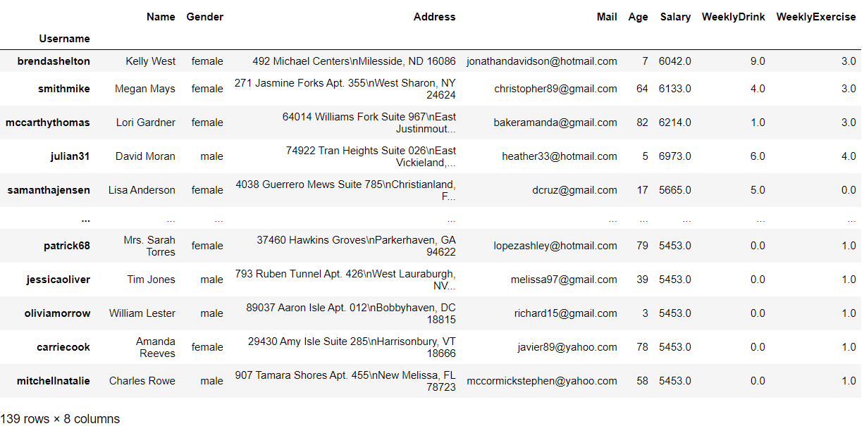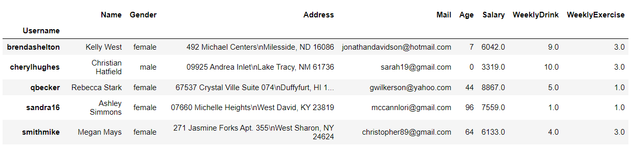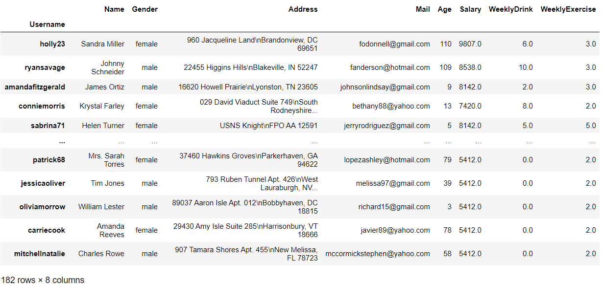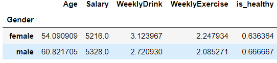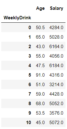 아래는 WeeklyDrink를 인덱스로 지정하고, 해당 인덱스를 기준으로 Age와 Salary의 중간값을 보는 예제입니다.