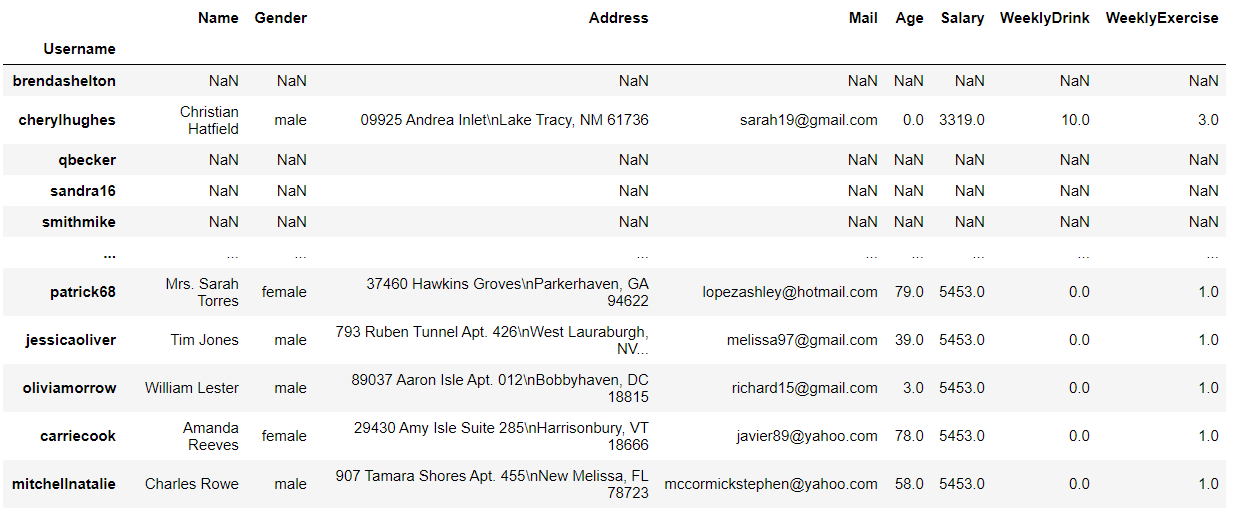 Salary가 6000 미만인 데이터의 행이 모두 NaN값으로 바뀐 것을 확인하실 수 있습니다.
