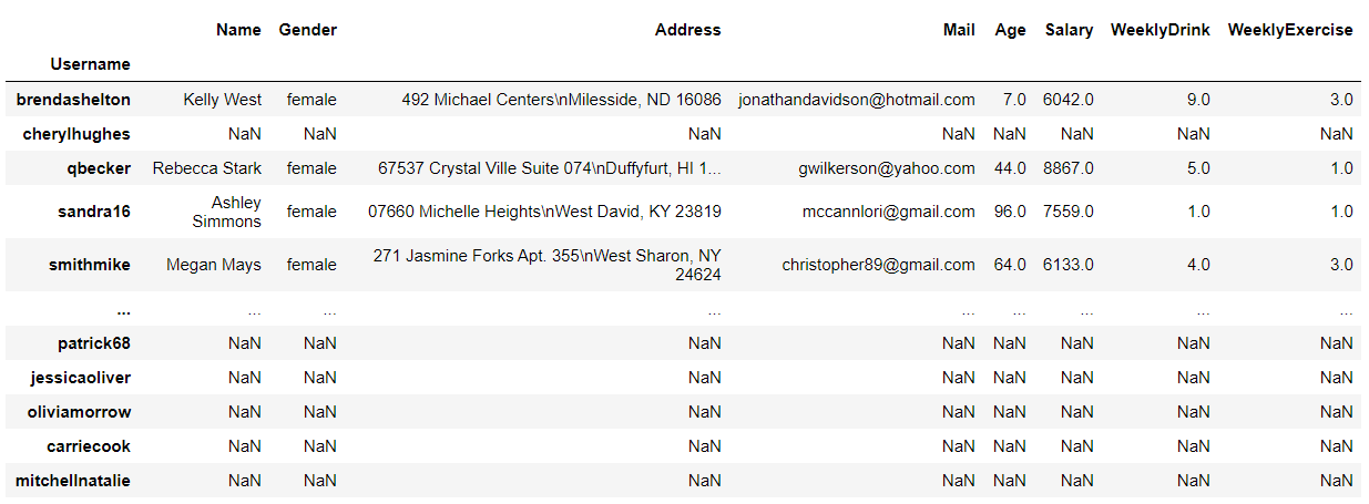 이번에는 Salary가 6000 미만인 데이터들만 살아남고, 나머지 데이터는 모두 NaN값으로 바뀌었습니다.