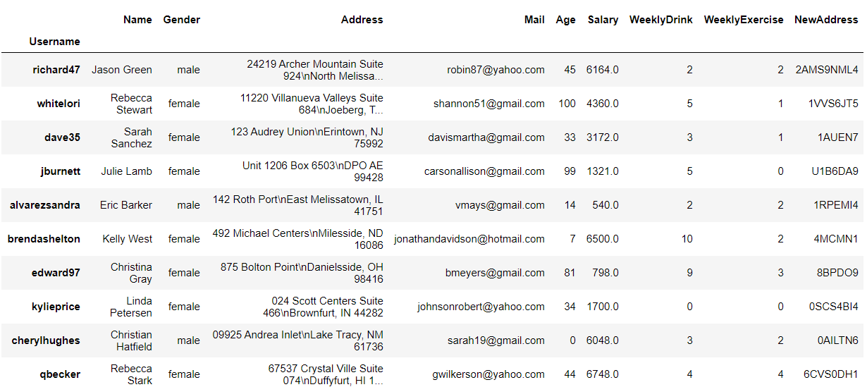 NewAddress라는 이름으로 새로운 컬럼이 생겼으며 함수가 잘 적용된 것을 보실 수 있습니다.