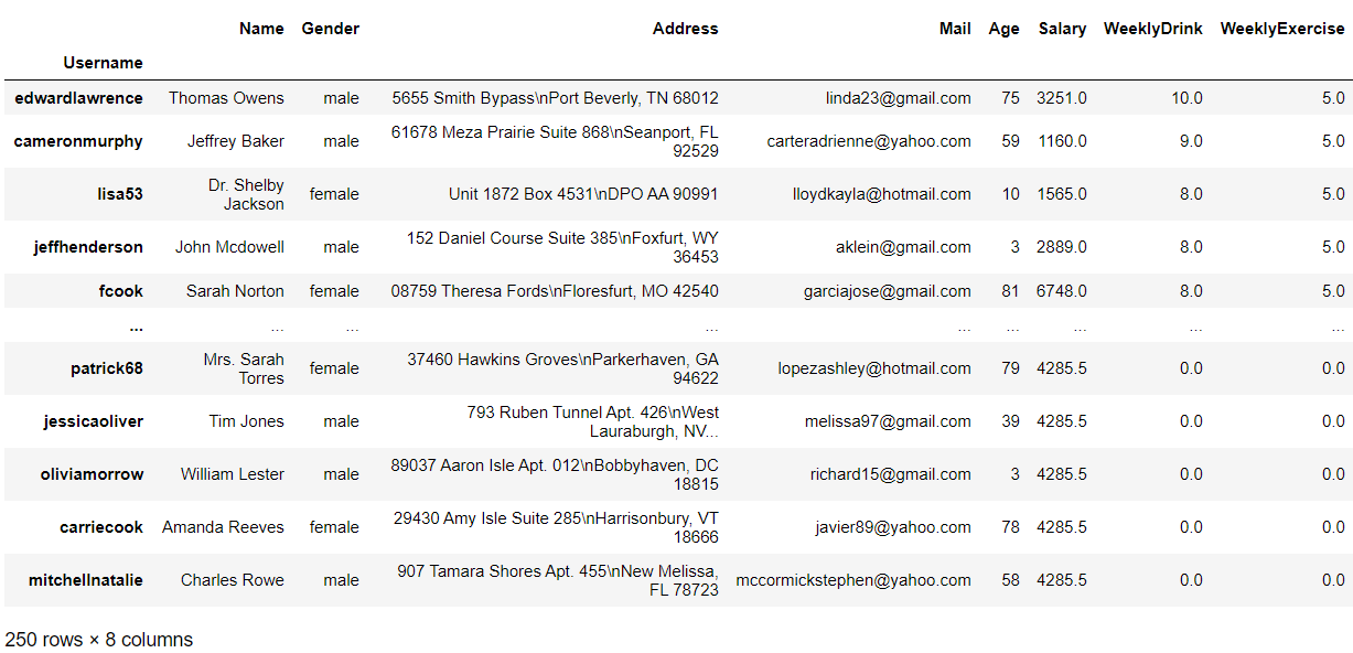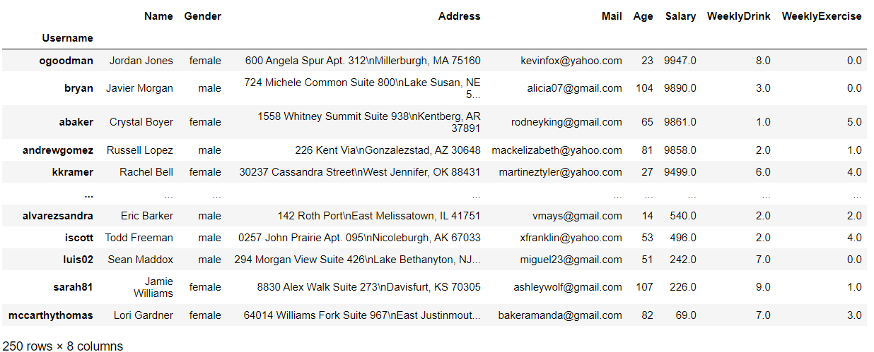 df.loc[(df["Salary"] >= 5000)|(df["WeeklyExercise"] < 4)]