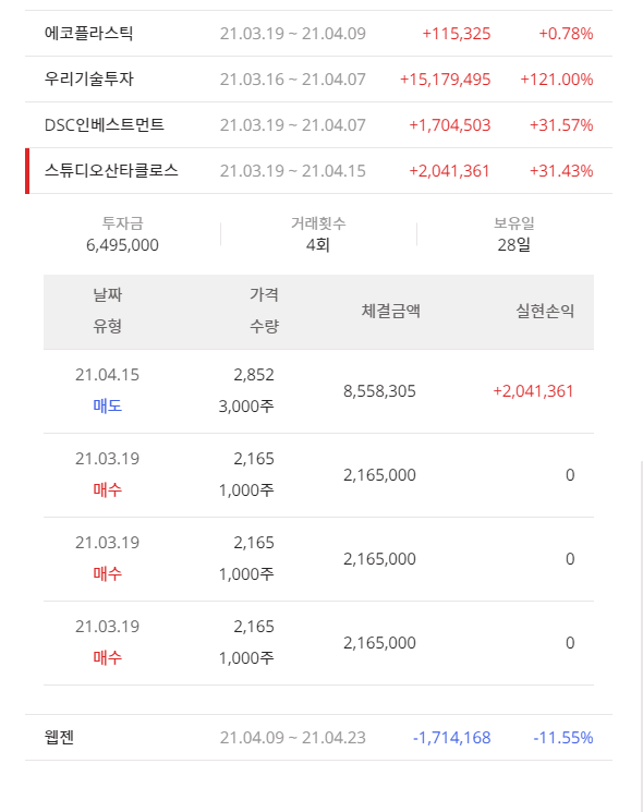 3. 투자성과, 보유현황, 매매내역