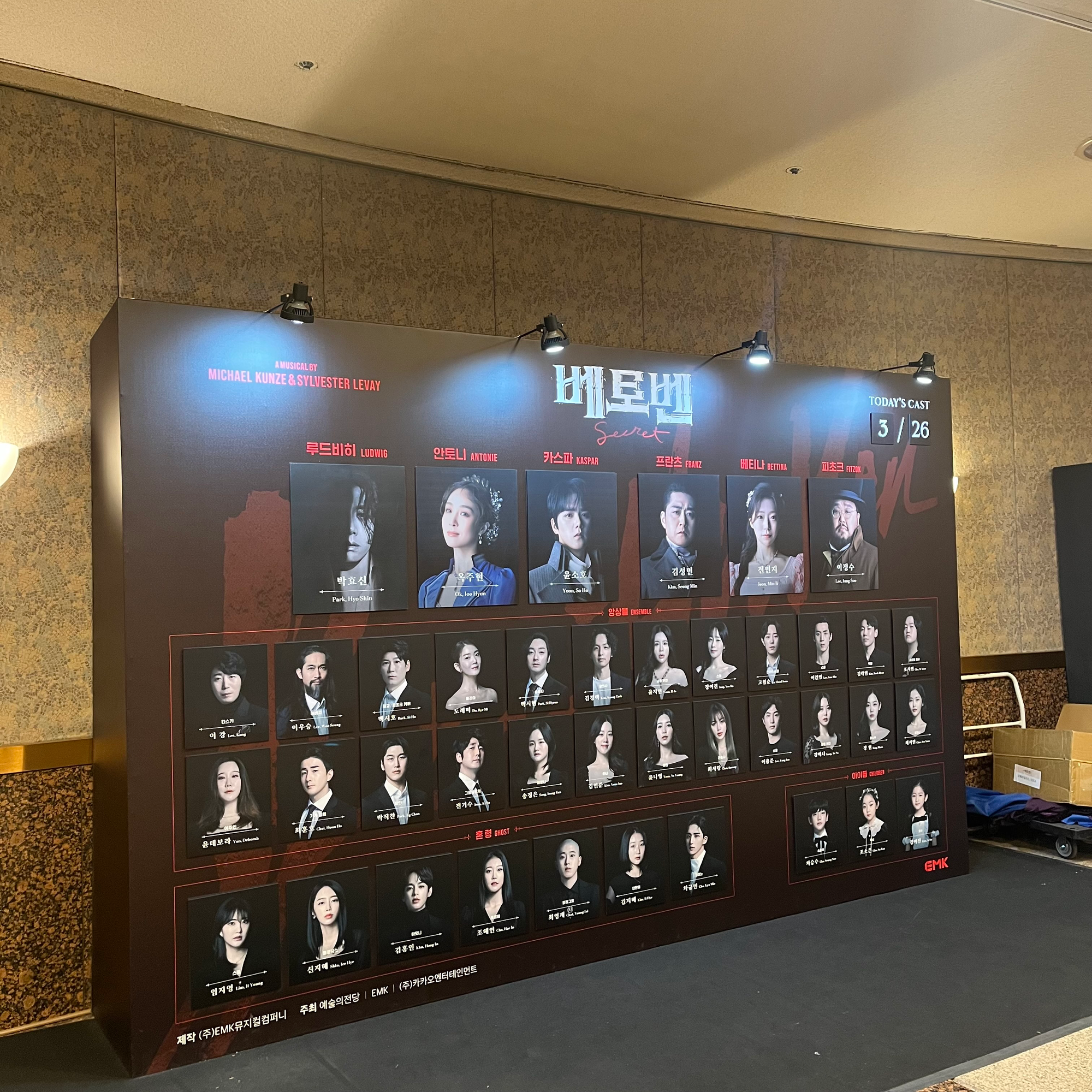 살면서 뮤지컬을 직접 보러 간 적이 없었는데, 베토벤 시크릿이라는 뮤지컬을 처음으로 보고 왔다. 예술의 전당 마지막 공연이었고 ‘박효신’, ‘옥주현’님이 주연으로 나왔다. 가기 전에 스토리가 별로라는 평을 봤었는데, 그래서 그런지 매우 재밌게 봤다.