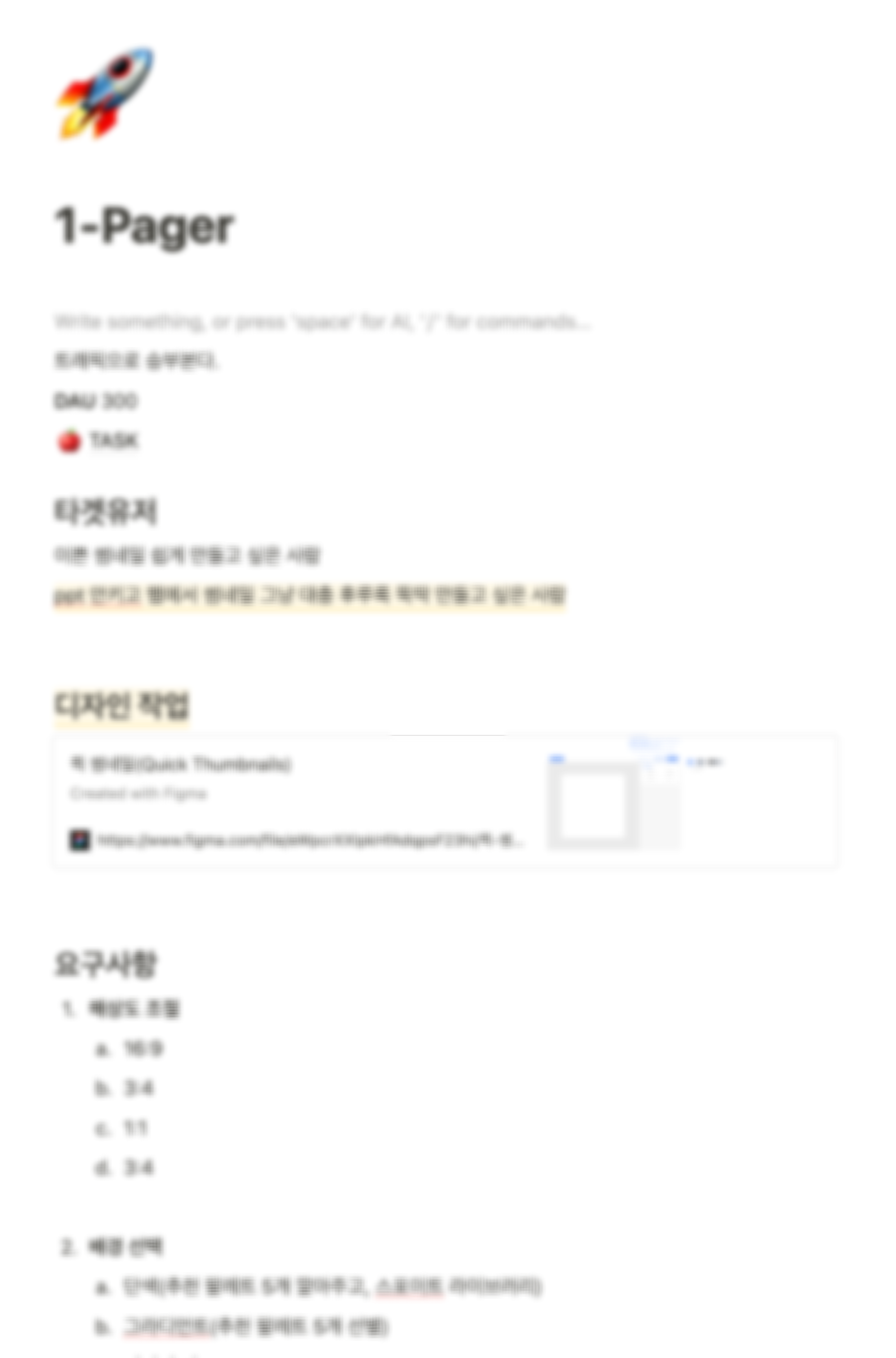 노션을 통해 1-Pager 작성, 백로그 관리등을 진행했습니다. 문서화가 필요한 경우들은 노션을 통해 관리했습니다.