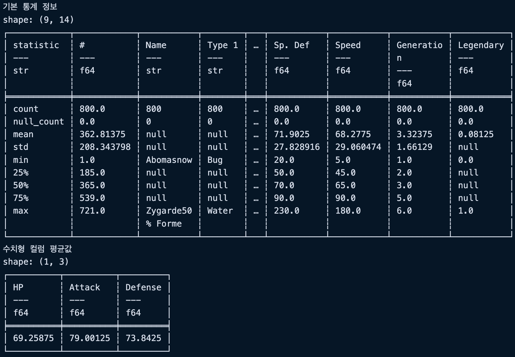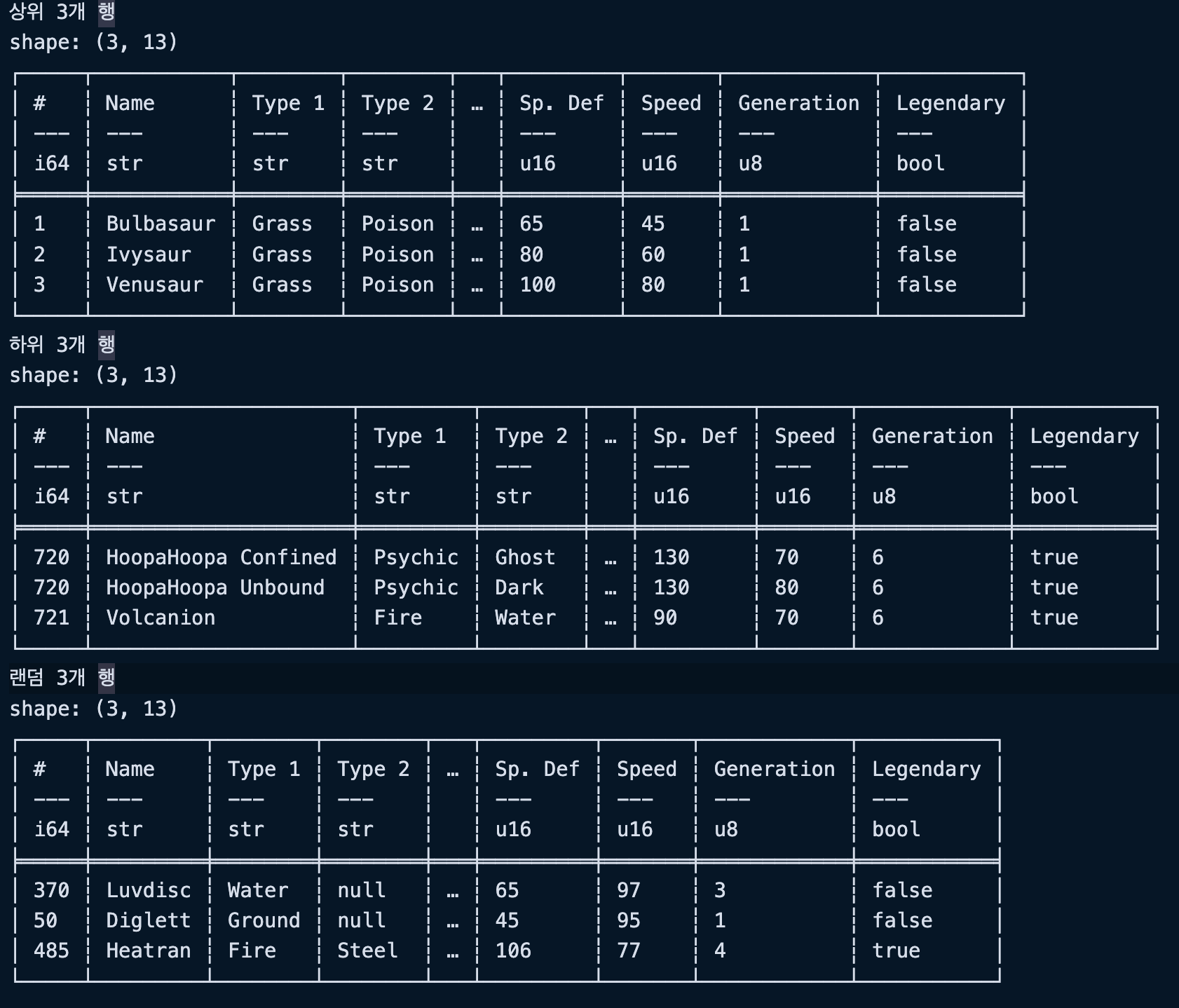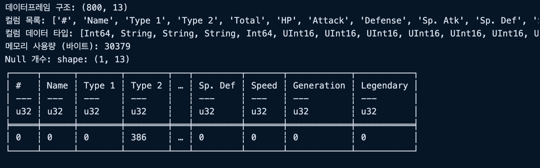 "Generation": pl.UInt8, # 세대는 6까지만 있어서 UInt8로 충분함